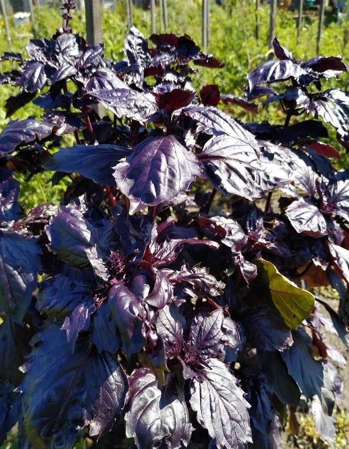 Сорт среднеспелый, от всходов до технической спелости 30–50 дней. Растение высотой 30–40 см, компактное, боковые побеги прижаты к основному стеблю. Листья от средних до крупных, удлиненно-яйцевидные, фиолетовые, пониклые, черешок средней длины, слабопузырчатые, край зубчатый. Стебель фиолетовый. Масса одного растения 180–280 г. Аромат сильный со специфическим «гвоздичным» привкусом. Предназначен для выращивания в рассадной и безрассадной культуре в защищенном грунте, под временными пленочными укрытиями и в открытом грунте для получения пучковой продукции, а также как горшечная культура. Схема посева 40–30 х 25 см. Используется в свежем виде как салатная зелень и пряновкусовая добавка в домашней кулинарии и при консервировании. Урожайность срезки зелени 2,0–2,5 кг/м2.