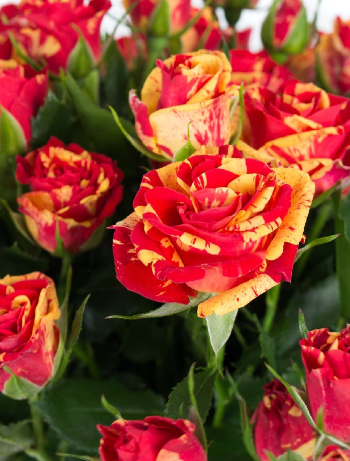 ОписаниеРоза спрей Файер Флеш красивая с яркими и очень эффектными цветками бордюрная розочка. Цветение очень обильное, не большие цветки диаметром до 4 см расположены в огромных соцветиях, из далека выглядит как лепестки пламени. Цветение обильное и непрерывное. Куст вырастает до 60 см, шириной до 55 см. Лист как и у всех бордюрных роз достаточно мелкий, насыщенно зелёной окраски. Очень хороша в бордюрной посадке, в садах, цветниках. Сорт розы устойчив к болезням Морозостойкость до -23°CВозраст саженца1 год