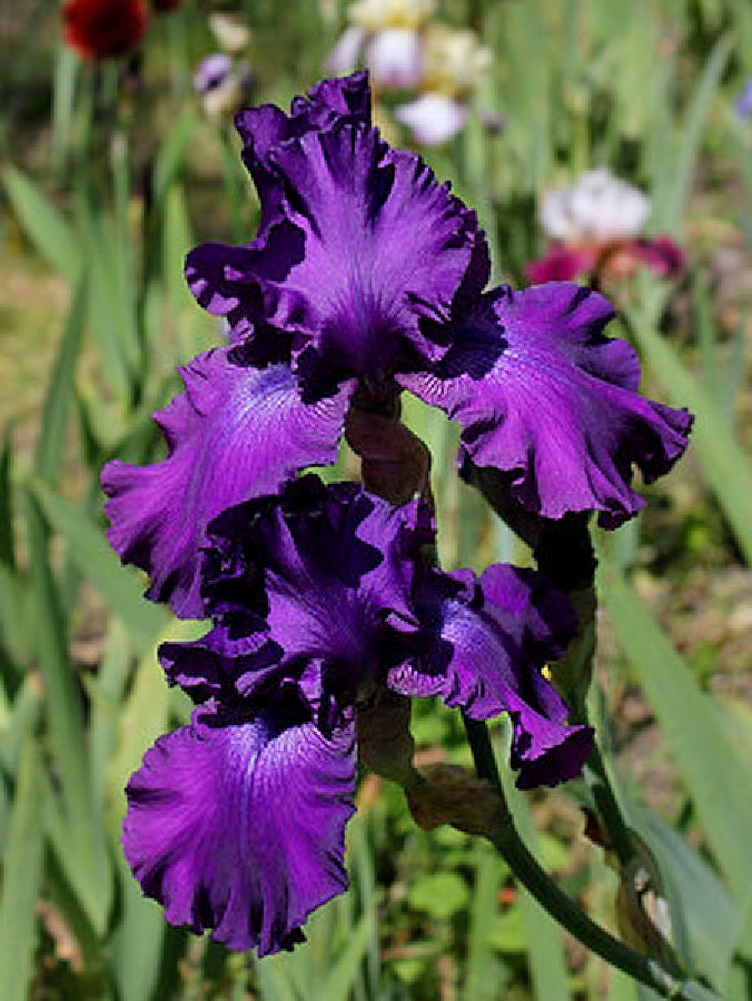 Ирис Мастер Тач – корневищное растение высотой 80см. Мечевидные листья с восковым налетом собраны в вееровидные пучки. Цветки темно-синие с фиолетовым оттенком, размером 10-12см, источают сладковатый тонкий аромат. Цветет с мая по июнь.
