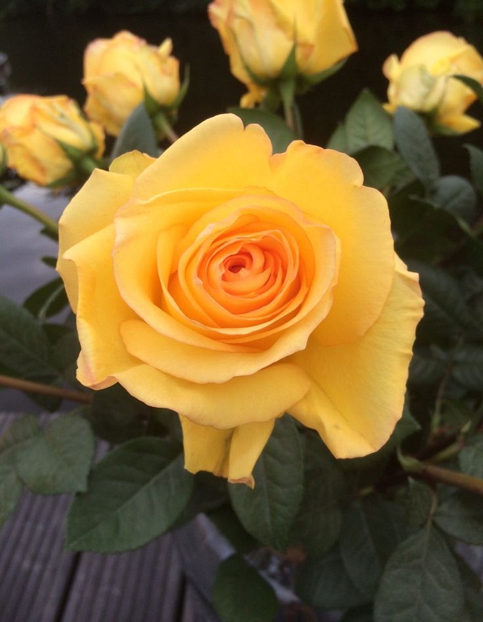ОписаниеDeja Vu, или роза Дежавю относится к чайно-гибридной группе роз. Куст сильнорослый, прямой, высокий, до 120 сантиметров в высоту, на одном побеге могут появляться ответвления в количестве от двух до четырех штук. Бутоны конусовидной формы, тугой, махровый не менее 30 лепестков в одном бутоне. Цветок относится к группе биколор, лепестки яркого, желтого цвета, с красивой розовато-оранжевой окантовкой по краям. Раскрывается до 10 сантиметров в диаметре, приобретет бокаловидную форму, а яркая окантовка выделяет каждый лепесток.Возраст саженца1 год