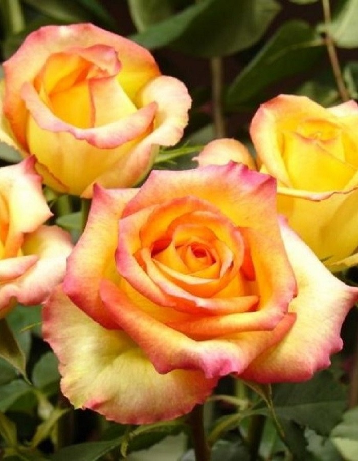 ОписаниеРоза чайно-гибридная Конфетти желтая с оранжевой каймой. Куст компактный, аккуратный, прямостоячий. Высота-80-100 см; ширина-60 см. Цветы густомахровые, чашевидной формы,крупные, диаметром 8-10 см. Листва темно-зеленого цвета, глянцевая, густая. Аромат насыщенный, хорошо ощутимый.Возраст саженца1 год