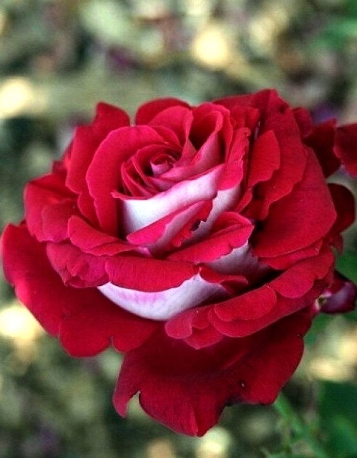 ОписаниеПобеги толстые, плотные, прямостоячие, слабошипатые, образуют мощные, объемные, ветвистые кусты обратнопирамидальной формы. Листья: плотные, ярко-зеленые, блестящие.  Цветы: Бутоны одиночные, густомахровые, бокаловидной, при полном раскрытии, широкочашевидной формы, диаметром 10-12 см, формируются на концах каждого побега. Лепестки тугие, жилистые, заворачиваются при раскрытии. Окрас двухцветный, насыщено кроваво-красный внутри и белесый снаружи. Аромат: слабый. Период цветения: Цветение розы происходит в две волны – первый раз с июня по июль, а затем еще раз с августа по сентябрь. Свойства растения и оптимальные условия выращивания. Аромат слабый.Возраст саженца1 год