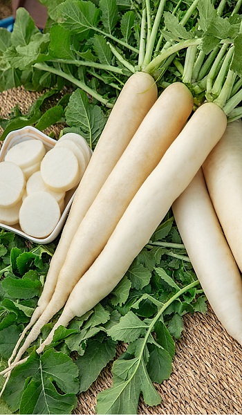 Среднеспелый (65-70 дней) сорт для использования в свежем виде и непродолжительного хранения. Корнеплод длинный, цилиндрический, с белой кожурой и белой мякотью. Масса корнеплода 1,2-1,5кг. Вкусовые качества отличные. Урожайность 10,6-12,6кг/кв.м. Устойчив к цветушности.