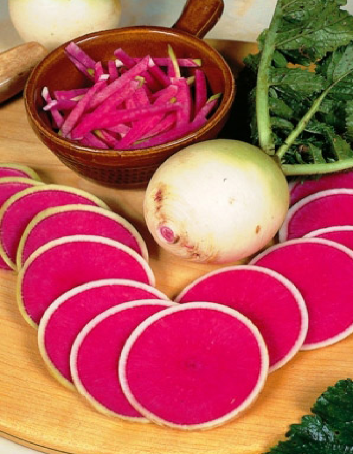 Урожайный, неприхотливый сорт для открытого и защищенного грунта. Корнеплод округлый, белый, гладкий, диаметром до 10см. Мякоть ярко розовая, очень сочная, пряно-сладковатая, нежная, плотная, хрустящая. Корнеплод наполовину погружен в почву, легко выдергивается. Ценность сорта: холодостойкость, отличные вкусовые качества, устойчивость к стеблеванию и слизистому бактериозу. Используется в свежем виде и для хранения (1-2 месяца).