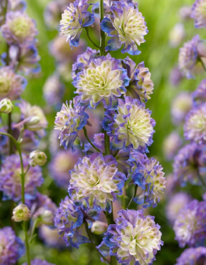 Очень нежные, изящные зеленовато-фиолетовые цветки шотландского дельфиниума Highlander Purple Surprise сказочно прекрасны. Складывается впечатление, что вместе с бабочками над соцветиями растения порхают невидимые эльфы.