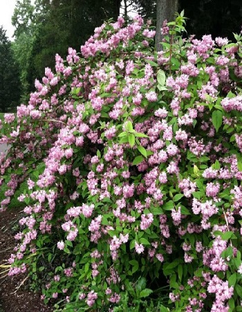 Применение,особенностиЗеленый раскидистый кустарник, с длинными ниспадающими соцветиями в форме венчика, каждый из которых состоит из двойного околоцветника и пяти заостренных лепестков. Дейцию Пинк Пом Пом используют для создания садовых скульптур, живых изгородей, цветочных водопадов, оформляют беседки и парковые аллеи. Садоводы-любители практикуют единичные посадки. Дейция Пинк Пом Пом, высаженная у дома, создает эффектную композицию и неповторимый колорит.КустКусты дейции Пинк Пом Пом довольно крупные – взрослые растения достигают в высоту 2 м, размах кроны в диаметре также примерно 2 м.ЛистьяГустая темно зеленая листва осенью желтеет. Шершавые удлиненные листья располагаются напротив друг друга.Цветы/соцветияЦветы обоеполые, небольшие, диаметром около 2 см, похожи на колокольчик, аромата не имеют. Лепестки махровые, белые внутри и розовые снаружи.ЗимостойкостьЗимостойкость средняя, до -29 °C.Возраст саженца1 годУсловия выращиванияМестоположение: солнце, полутень.Почва: предпочитает достаточно влажные, но хорошо аэрируемые плодородные почвы.Требует укрытия на зиму, так как в бесснежную зиму может вымерзнуть.