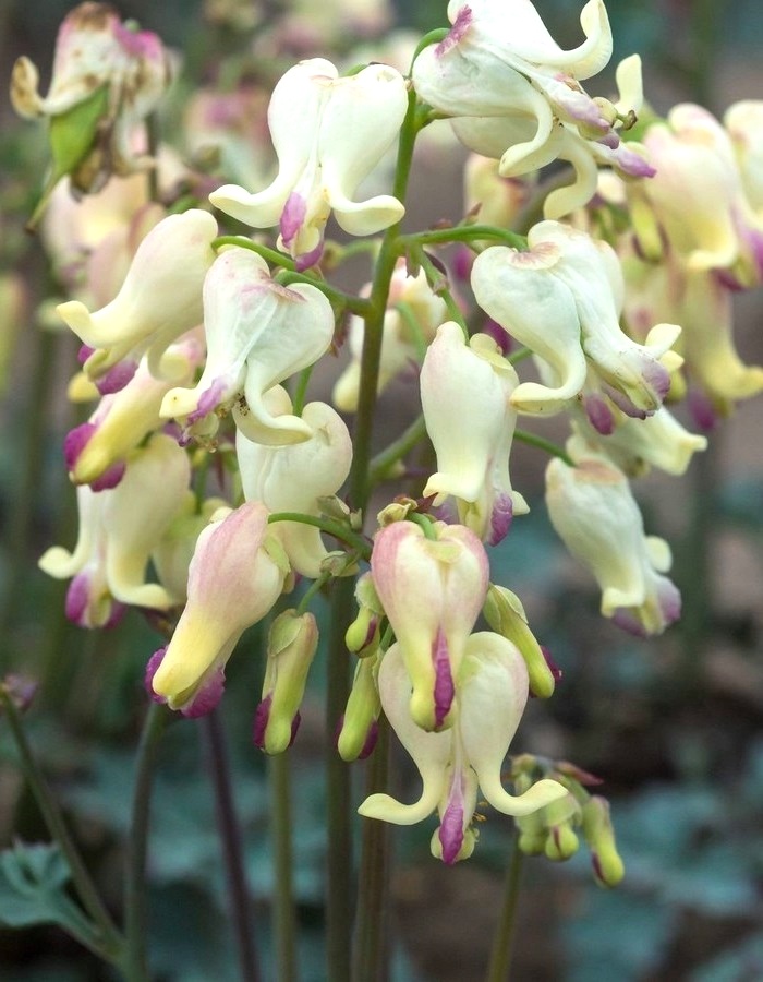 Дицентра Лав Хертс-невероятно привлекательный многолетник. Цветет красивыми кремовыми цветками с розово-фиолетовыми кончиками. Образует немыслимо красивый объем сине-зеленой листвы. Отлично подойдет дицентра для смешанных посадок в цветниках, бордюрах, на горках.