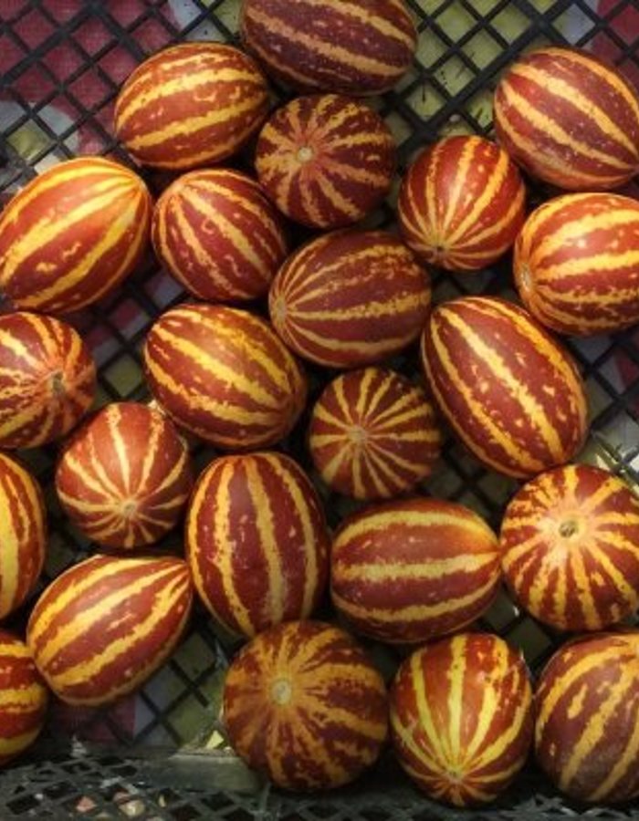 Исключительно интересное растение для зон северного садоводства. Уникальная дыня, которая не боится похолоданий, а также обильных осадков во время созревания плодов. Цвет насыщенно-оранжевый с многочисленными жёлтыми полосками. Мякоть кремовая и очень сладкая. Аромат волшебный с множеством оттенков: тут и клубника, и манго, и ананас. Урожай за сезон — 20-30 мини-плодов. Благодаря скороспелости эта дыня вызревает даже в короткое северное лето, особенно если прищипывать побеги после образования завязей. Подходит для выращивания в открытом грунте и теплицах. .