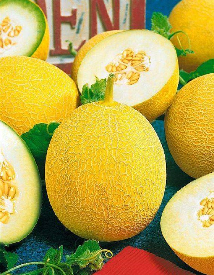 Очень урожайный, среднеспелый, десертный сорт. Плоды шаровидные, ярко-желтые, со сплошной сеткой, массой 2-4 кг. Мякоть белая, толстая, сочная, сахарная, тающая, с приятным, дынным ароматом. Кора прочная. На некоторых плодах бывает рисунок – полосы, которые к моменту созревания становятся совершенно незаметными. Семенное гнездо маленькое. Сорт ценится за отличный вкус, высокую урожайность, холодостойкость, транспортабельность.