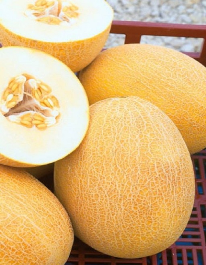 Перспективный, высокоурожайный, раннеспелый сорт. Плоды овальные, жёлтые, со сплошной сеткой, массой 1,8-4 кг. Мякоть белого цвета, среднеплотная, нежная, сочная, сладкая и очень ароматная, толщиной 5-6 см.