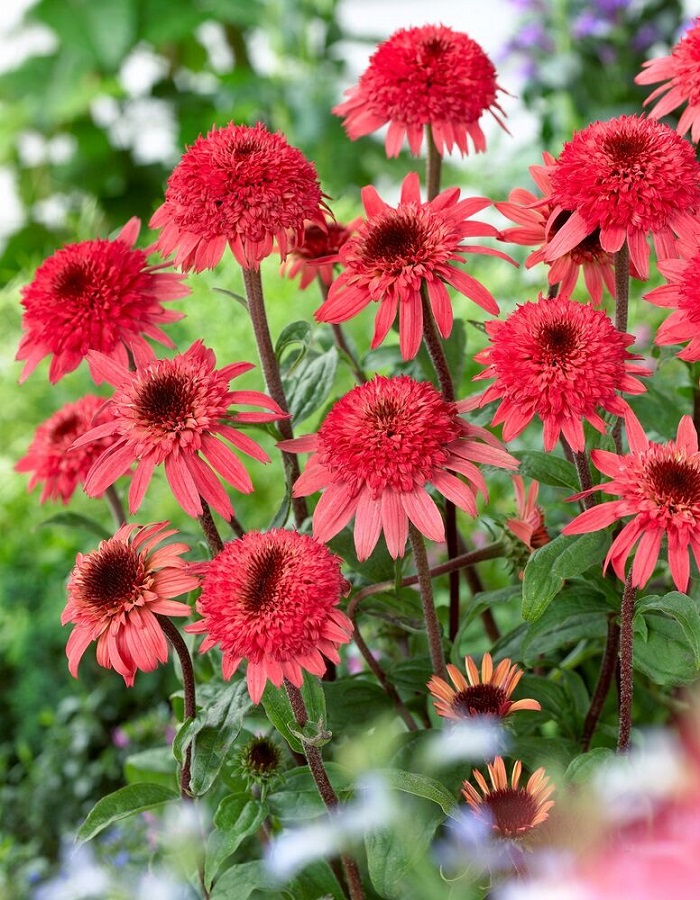Эхинацея Raspberry Truffle – многолетнее травянистое корневищное растение. Куст высотой до 80 см, шириной 60-75 см. Появляются оригинальные, махровые соцветия красно-розового оттенка, центр коричневый. Растение имеет плотные, прочные стебли коричневого цвета. Начинает цвести в середине лета.