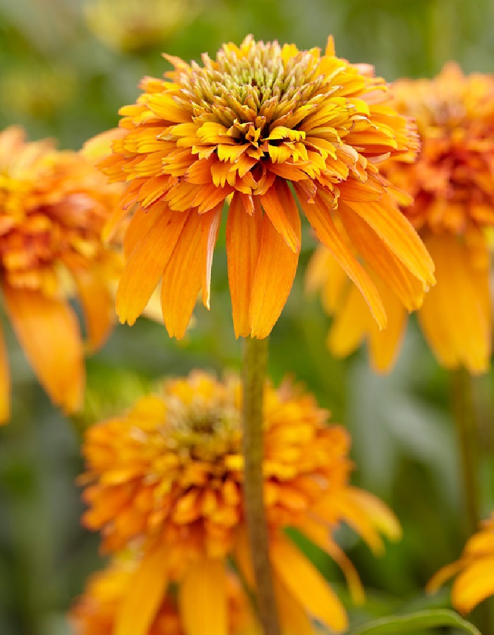 Эхинацея Marmalade (Мармелад)-многолетнее, травянистое растение с прямыми, прочными стеблями, высотой 60 см и шириной куста 80 см. Очень яркий цветок с крупным сильно махровым помпоном оранжево-красных оттенков. Цветет с июля по сентябрь.Сорт обильноцветущий, хорошо разветвлён. Привлекателен для пчел и бабочек, является хорошим дополнением к цветочным букетам.