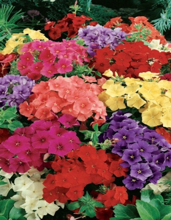 Славная смесь пастельных тонов. Куст сильноветвящийся, высотой 30см. Крупные цветки разнообразной окраски с темными глазками собраны в зонтиковидные щитки. Цветет обильно с июля по октябрь