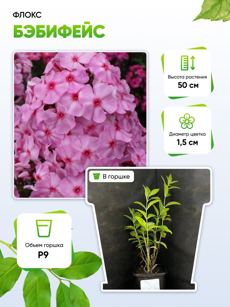 Флокс Бэбифейс - один из наиболее популярных морозостойких многолетников высотой 50 см. Особую декоративность ему придают плотные метельчатые соцветия розовой окраски с малиновым глазком. Цветки душистые диаметром 1,5см. Отличается обильным и продолжительным цветением с июля до сентября. Прекрасно смотрится в букетах, маленькими и большими группами на клумбах и рабатках.