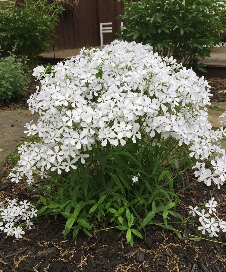 ПрименениеФлокс идеально подходит для групповых и одиночных посадок. Незаменим флокс в миксбордерах и садах в стиле кантри. Отличными соседями для него в этом случае станут колокольчики, аквилегии, рудбекии, гвоздики. Отлично подходят флоксы для срезки, долго сохраняют свежесть в воде.Дерево (куст)Весеннецветущая низкорослая разновидность. Куст быстрорастущий, высота 30-40 см, формируется легко.ЛистьяЛистья сидячие, супротивные или очередные, цельные, ланцетные, яйцевидно-ланцетные или линейно-шиловидные.Цветы (соцветия)Сравнительно мелкие голубые звездчатые цветки собраны в неплотные щитковидные соцветия по 5-12 штук от 2 до 5 см в диаметре Зацветает флокс растопыренный в конце мая, цветение продолжается около месяца.Возраст1 год