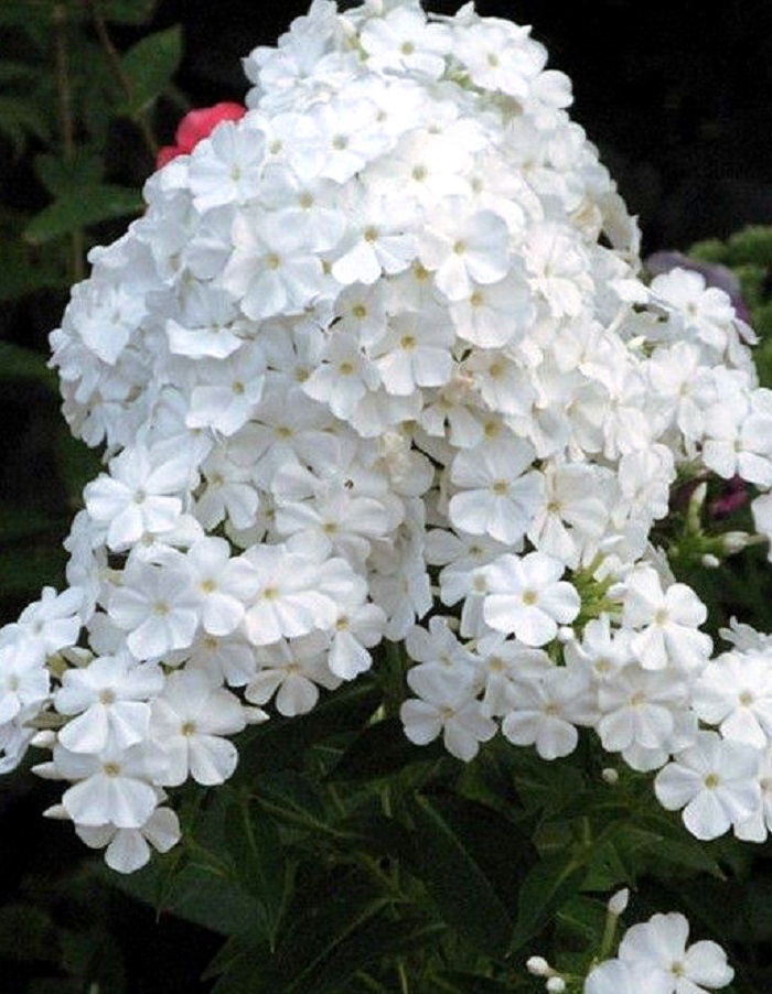 Флокс Рембрандт метельчатый - Цветки чисто белые собранные в плотные округло-конических соцветия. Кусты высокие около 100-120 см, достаточно раскидистые. Плотные стебли могут сгибаться под тяжестью пушистых соцветий, когда идут проливные дожди. Сорт обладает высокой зимостойкостью. Цветы диаметром до 3,8 см собраны в плотные соцветия овально-конической формы. Цветение июнь-август.
