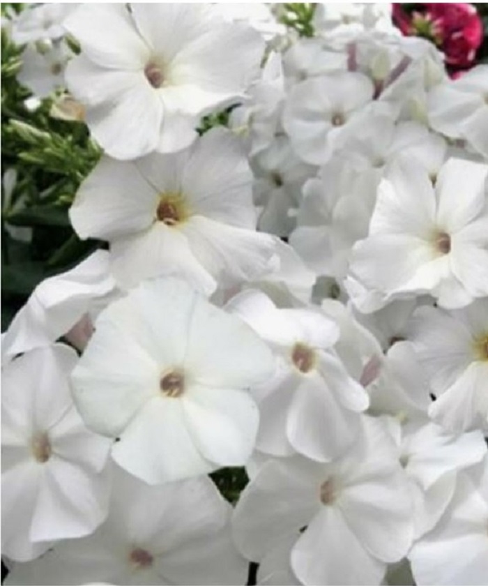 Флокс Пина Колада метельчатый - Белый, цветок колесовидный, соцветие овально-коническое, плотное. Темно-зеленая здоровая листва. Высота растения 50 см; диаметр цветка 4см. Цветет обильно и продолжительно, с июля до конца сентября.