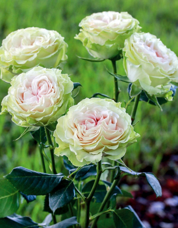 В фазу цветения саженец вступает очень быстро. Количество бутонов возрастет в геометрической прогрессии с возрастом растения – трехлетний куст весь сезон цветет очень обильно, без перерывов на отдых. На стебле вырастает до 3-5 бутонов травяного оттенка. От них исходит едва уловимый свежий аромат. Распустившиеся цветки впечатляют гаммой оттенков: крем-брюле по центру, ближе к серединке ванильно-салатовый, а крайние лепестки иногда покрывает легкий румянец. Цвета бледные, но роскошные.