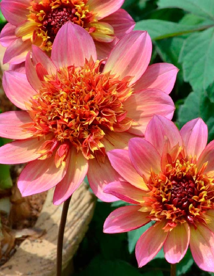 Георгина анемоновидная Floorinoor (Флоринор) - высота растения 100 см. Невероятно эффектный цветок. Наружные лепестки нежно-розовые, ближе к серединке-золотисто-жёлтые, и приобретают бордовый оттенок в центре. Диаметр цветка 5-12 см. Период цветения июль-октябрь.