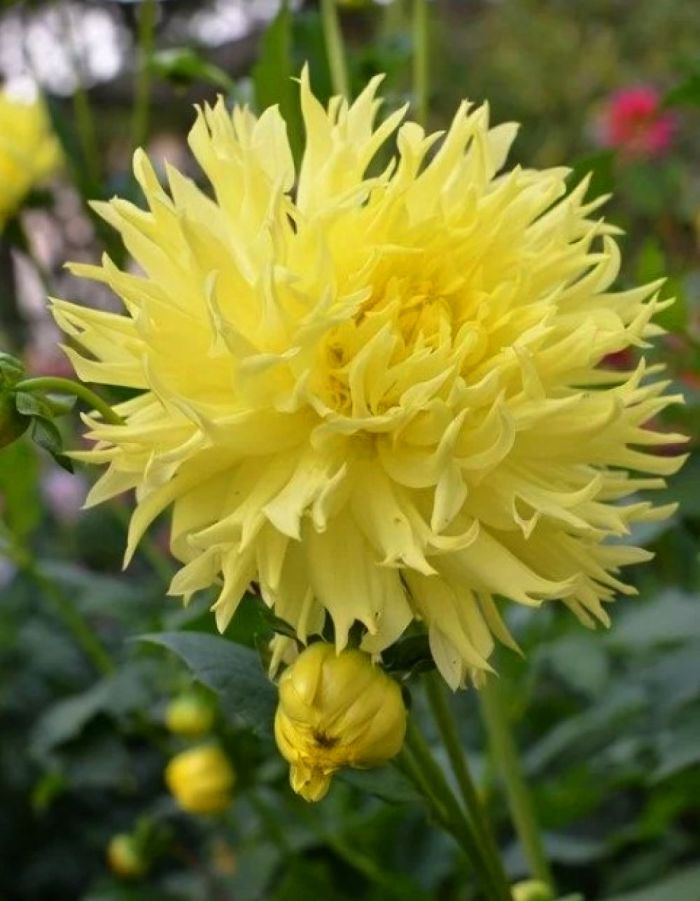 Рассада георгины бахромчатой Промис (Dahlia Laciniated Promise) нужна любому цветущему саду. Ярко-желтые пушистые перистые цветки диметром до 15 см без аромата и не нуждающиеся в сложном уходе принесут радость любой хозяйке. На контрасте с обильной темно-зеленой массой листьев они говорят о самой нежности и хрупкости. Несмотря на внешнее впечатление, растение очень крепкое, вырастающее до 100 см в высоту и устойчивое к ветреным местам. Необходимым условием для обильного цветения будет наличие солнца и свободного пространства. Хорошо смотрятся в смешанных посадках, идеальны для срезки под украшение помещений.