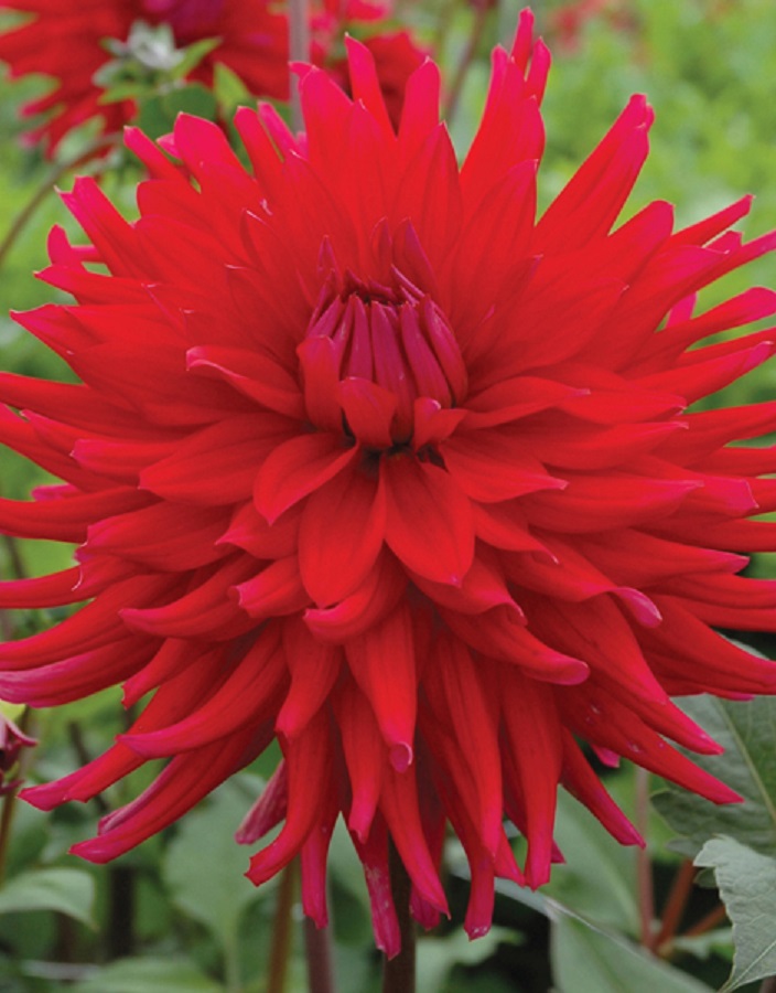 Георгина Акапулько (кактусовидная) – клубневое растение высотой 130см. Оригинальные ярко красные цветки достигают 25-30см в диаметре и служат замечательным украшением сада. Роскошно цветущая георгина ценится за сравнительную легкость выращивания и очень продолжительные сроки цветения. Идеально подходит для групповых посадок. Отлично смотрится в срезке.