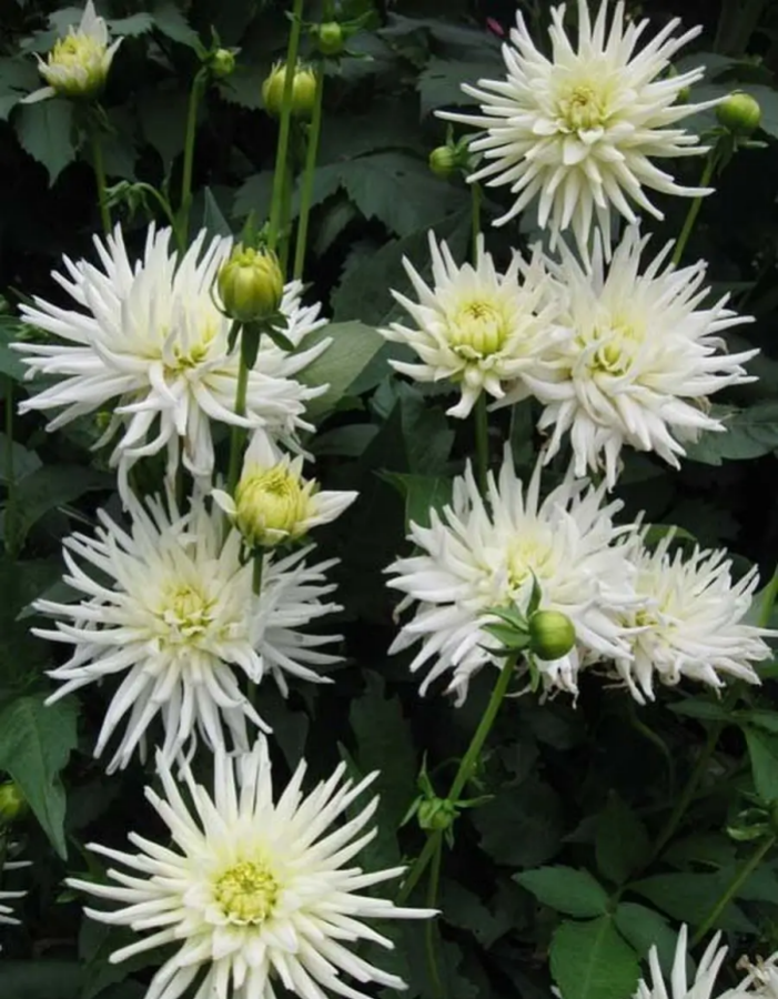 Cтебли прочные не требуют подвязывания к опоре, листья темно-зеленого оттенка, идеально контрастируют с белоснежными цветами "ежиками". В срезке цветоносы очень устойчивы, а в дождливую погоду цветки не склоняются к земле, это качество не заменимо в ландшафтных композициях. В основном выращивают карликовые георгины для озеленения и срезки, широко используется для выращивания в горшках и вазонах. Эти георгины способны украсить не только ваш бордюр или миксбордер, но и жилье своим длительным цветением.
