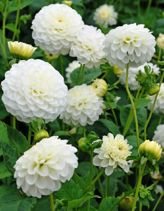 Георгина Уайт Астер (шаровидная) – клубневое растение высотой 100-110см. Привлекательные белоснежные цветки достигают 10-12см в диаметре и служат замечательным украшением сада. Роскошно цветущая георгина ценится за сравнительную легкость выращивания и очень продолжительные сроки цветения. Идеально подходит для групповых посадок. Отлично смотрится в срезке.