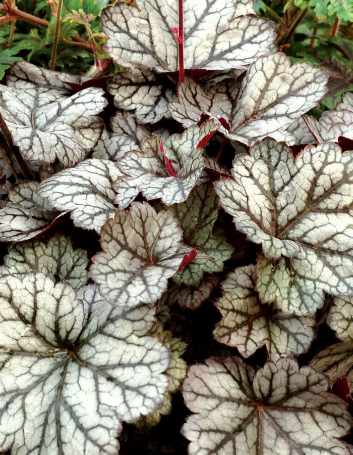 ПрименениеГейхеру часто располагают в кашпо и вазонах, что возможно благодаря её небольшим размерам. Так Глиттер используется в качестве комнатных растений или находит свое место на балконе, у окон.Дерево (куст)Глиттер – компактный куст, которому характерны плотность и быстрое развитие в сравнении с другими садовыми растениями. Высота гейхеры может достигать до 35 см, ширина до 45 см, цветоносы вырастают до 40 см. Листья небольшого размера имеют округлую форму, прожилки тёмные. Самым главным преимуществом можно считать окраску растения, которая имеет серебристый оттенок с лавандовой изнанкой.ЗимостойкостьЗимостойкость высокая, до -34 °C.Возраст саженца1 годУсловия выращиванияДля посадки лучше всего подходят солнечные участки, но растение также переносит легкое затенение. Почва должна быть легкой, питательной с высоким уровнем кислотности.