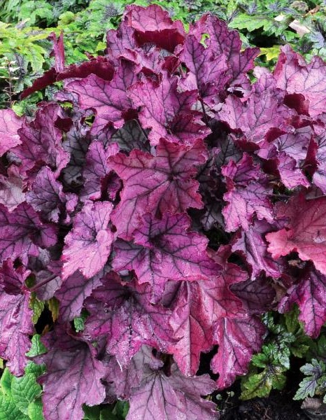 ПрименениеДекоративное растение.Дерево (куст)Он отличается необыкновенной красотой и пышным цветением. Этот низкорослый компактный куст достигает высоты 30 см и ширины 45 см. Листья этого растения крупные, кленовидной формы, гофрированные, ярко окрашены в серебристые тона с фиолетово-розовыми оттенками. К концу лета на листве появляется заметная розовая кайма. Гейхера меняет цвет листьев в течение всего сезона. Цветоносы этого растения высокие, до 45 см. Цветки представлены маленькими колокольчиками белого цвета в соцветии метелка.ЗимостойкостьЗимостойкость высокая, до -34 °C.Возраст саженца1 годУсловия выращиванияДля посадки лучше всего подходят солнечные участки, но растение также переносит легкое затенение. Почва должна быть легкой, питательной с высоким уровнем кислотности.
