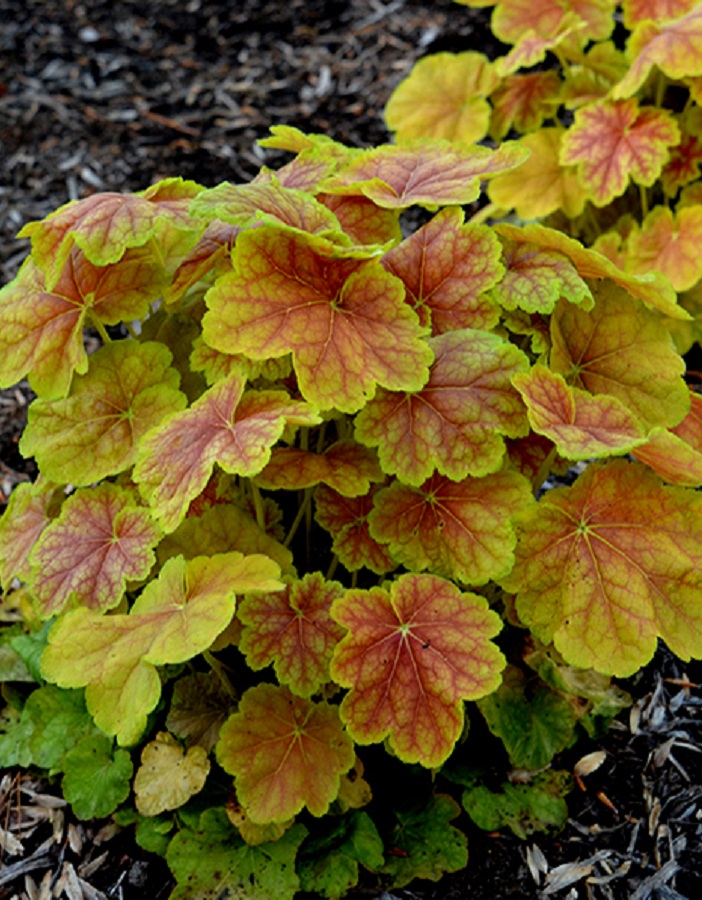ПрименениеДекоративное растение.Дерево (куст)Гейхера Тирамису – многолетний, прямостоячий, компактный кустик, высотой 25-30 см и диаметром до 50 см. Куст отличается быстрым разрастанием, формирует густую розетку из листков. .ЛистьяЛист резной, глянцевый, плотный, курчавый , красно-желтый, кайма светло-зеленая, подложка обратной стороны темная, прожилки темные. Они меняют окраску в течение сезона.Цветы (соцветия)Цветонос высокий 40 см, окраска цветка розово- красная.ЗимостойкостьЗимостойкость высокая, до -34 °C.Возраст саженца1 год