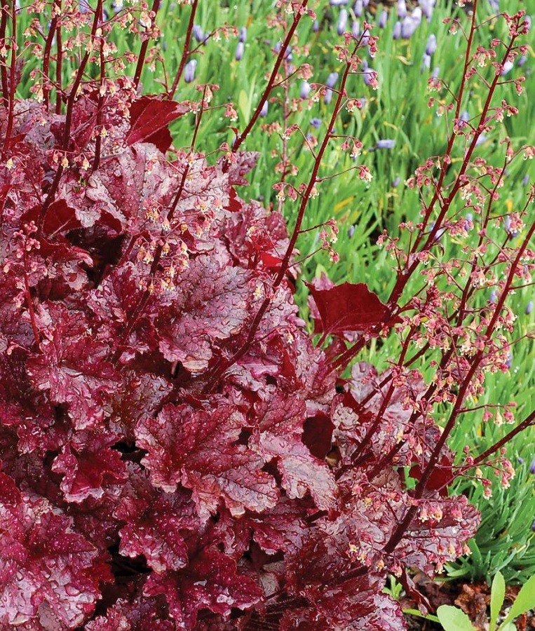 ПрименениеДекоративное растение.Дерево (куст)Гейхера «Мармелад» – сложный гибридный сорт, полученный от скрещивания трех видов гейхер. Это самый высокорослый вид из своих собратьев, достигающий высоты 45 см. Образует пышный, округлой формы кустик. Листья лопастные с гофрированными краями, имеют глянцевую поверхность и покрыты волосистым опушением. Оригинальная расцветка меняется с весны до осени.Цветы/соцветияЦветение начинается с июня и длится по июль. Оно представляет собой выбрасывание высоких цветоносов, на верхушке которых расположены метелки, состоящие из маленьких цветочков бордового или белого цвета. Цветок живет 3-4 года.ЗимостойкостьЗимостойкость высокая, до -34 °C.Возраст саженца1 годУсловия выращиванияДля посадки гейхеры наилучшим образом подойдут полутенистые места. Если участок освещается солнцем только в утренние часы - он оптимален для гейхеры.