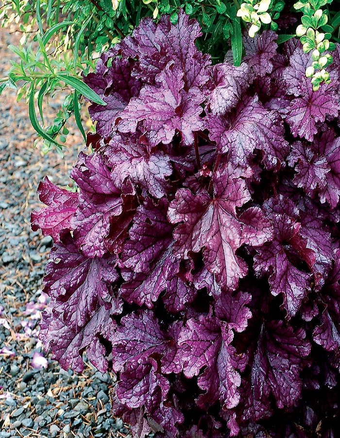 ПрименениеДекоративное растение.Дерево (куст)Компактный шарообразный куст, который отличается своей пышностью и хорошим объёмом. Высота как для гейхеры средняя, она составляет около 30 см. Ширина почти вдвое больше – 55 см. Кустик отличается высокой интенсивностью разрастания, чем и привлекает немалое количество садоводов.ЛистьяКрупные резные листья округлой формы. Прожилки тёмные, подчёркивают всю структуру листьев. Пурпурно-фиолетовая окраска является неоднородной. В некоторых местах она может быть темнее, в других же на несколько тонов светлее. Это зависит как от самого растения, так и от условий, где Форевер Перпл выращивается. Края листьев волнистые, поверхность гейхеры блестящая, что делает внешний вид более необычным на солнце.Цветы (соцветия)Соцветие в форме метелки, цветоносы достигают длины до 20 см. Мелкие цветы розового окраса прекрасно дополняют цветовую гамму всего растения.ЗимостойкостьЗимостойкость высокая, до -34 °C.Возраст саженца1 годУсловия выращиванияДля посадки лучше всего подходят солнечные участки, но растение также переносит легкое затенение. Почва должна быть легкой, питательной с высоким уровнем кислотности.