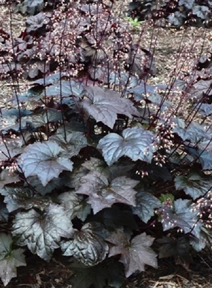 ПрименениеДекоративное растение.Дерево (куст)Гейхера Блэкаут - вечнозеленое травянистое растение. Размеры одного кустика достигают 20 см в высоту и 30 см в ширину. Хорошо разрастается.ЛистьяЛистья кленовидные, с характерными зубчиками. Они меняют окраску в течение сезона. Большую часть времени листья остаются почти черными, но к осени светлеют до темно-коричневого с красным тонами.