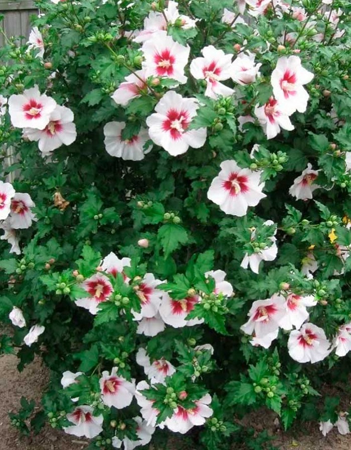 ПрименениеУниверсальный сорт.Дерево (куст)Листопадный кустарник высотой до 2-3 метровЛистьяЯрко-зеленые, крупные, овальные или трехлопастные, зубчатые по краю.Цветы/соцветияЦветы крупные, одиночные, немахровые, белые или кремово-белые с темно-красным или малиновым центром. Цветки раскрываются утром и увядают к вечеру. Цветение июль-сентябрьЗимостойкостьЗимостойкость до -18 °C. Молодые растения рекомендуется укрывать на зиму.Возраст саженца1 годУсловия выращиванияПредпочитает солнечные, хорошо освещенные участки, но переносит и полутень (цветение будет менее обильным). Важно защитить от холодных ветров.