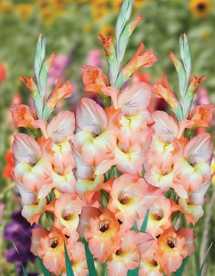 Гладиолус Eminence - сорт с гофрированными кончиками лепестков. Цветок гладиолуса имеет множество оттенков. Основная окраска — лососево-розовая, с более темными оттенками на окантовке.Высота растения 100 см