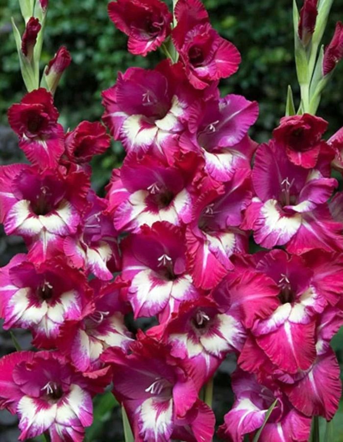 Гладиолус крупноцветковый Джо Джо – растение высотой от 90 до 110см. Имеет вертикальный неветвящийся стебель и линейные листья. Привлекает внимание крупными и пышными тёмно-малиновыми цветками с белой срединной жилкой и белым мазком на нижних лепестках, диаметром до 12см, собранными в вертикальные соцветия. Элегантный и величественный гладиолус Джо Джо станет фаворитом сада на исходе лета.