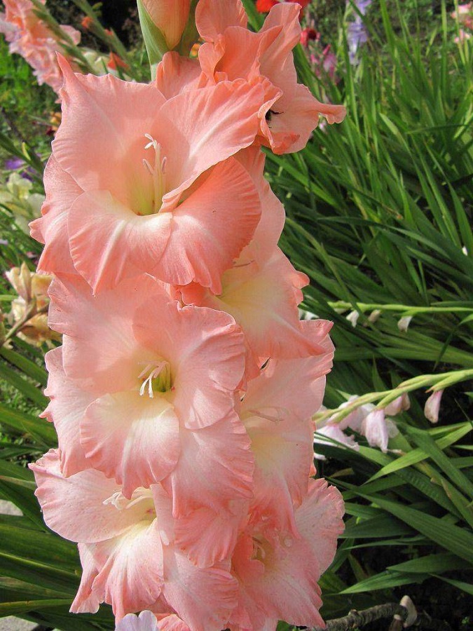 Гладиолус крупноцветковый Цимароза – растение высотой от 90 до 100см. Имеет вертикальный неветвящийся стебель и линейные листья. Привлекает внимание крупными и пышными нежно-розовыми цветками диаметром до 14см, собранными в вертикальные соцветия. Элегантный и величественный гладиолус Цимароза станет фаворитом сада на исходе лета.