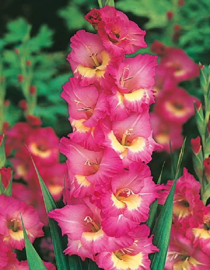 Гладиолус Винд Сонг Гладиолус Виндсонг относится к группе крупноцветковый, высота растения 90-110 см. Цветок: ярко-малиновый с кремовой сердцевиной. Листья растения узкие и длинные с заостренным концом.