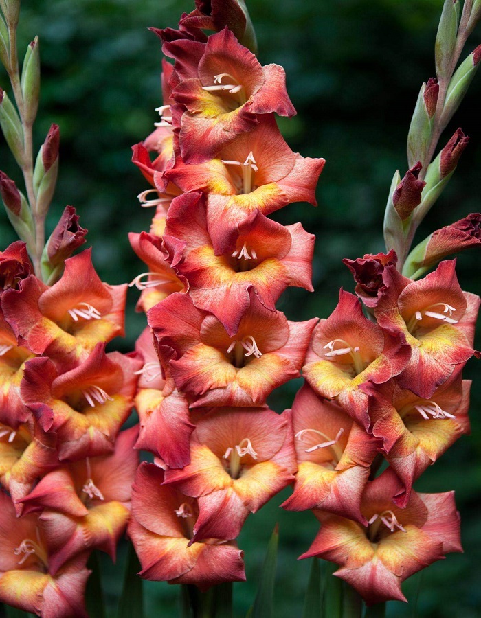 Гладиолус баттерфляй Мишель – растение высотой 90см. Имеет вертикальный неветвящийся стебель и линейные листья. Привлекает внимание крупными и пышными красно-коричневыми цветками с желтым пятном, диаметром до 14см, собранными в вертикальные соцветия. Элегантный и величественный гладиолус Мишель станет фаворитом сада на исходе лета.