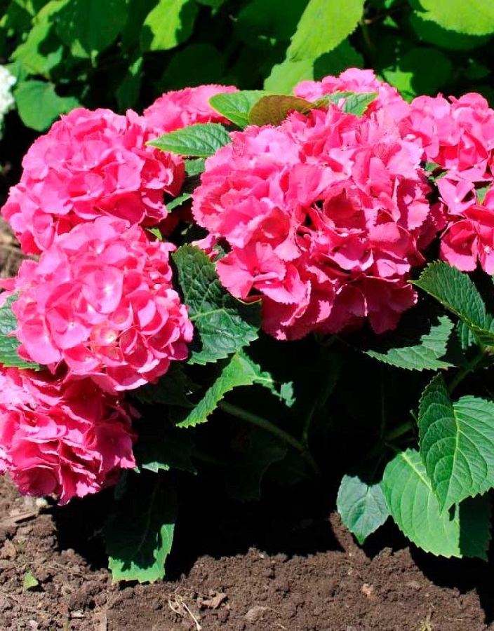 ПрименениеЯркая гортензия Альпенглюхен – любимица садоводов и ландшафтных дизайнеров. Особенно ценна ее равномерная пушистая крона, усеянная достаточно крупными шаровидными соцветиями. В составе живой изгороди и на клумбе гортензия будет выглядеть одинаково привлекательно.Дерево (куст)Шаровидная крупнолистовая гортензия Alpenglühen – это среднерослый куст высотой до 120 см. Диаметр ее роскошной кроны в виде шара практически равен высоте куста.ЛистьяЯркие соцветия особенно эффектно смотрятся на фоне насыщенно-зеленой кроны с крупными изумрудными листьями.Цветы (соцветия)Гортензия Альпенглюхен отличается пышными шаровидными соцветиями диаметром до 20-25 см насыщенного красно-розового цвета, которые цветут с июля по сентябрь. Этот сорт сохраняет яркий красный оттенок даже на кислой почве, что является его особенностью. Цветки образуются на побегах прошлого года, поэтому требуется укрытие на зиму.