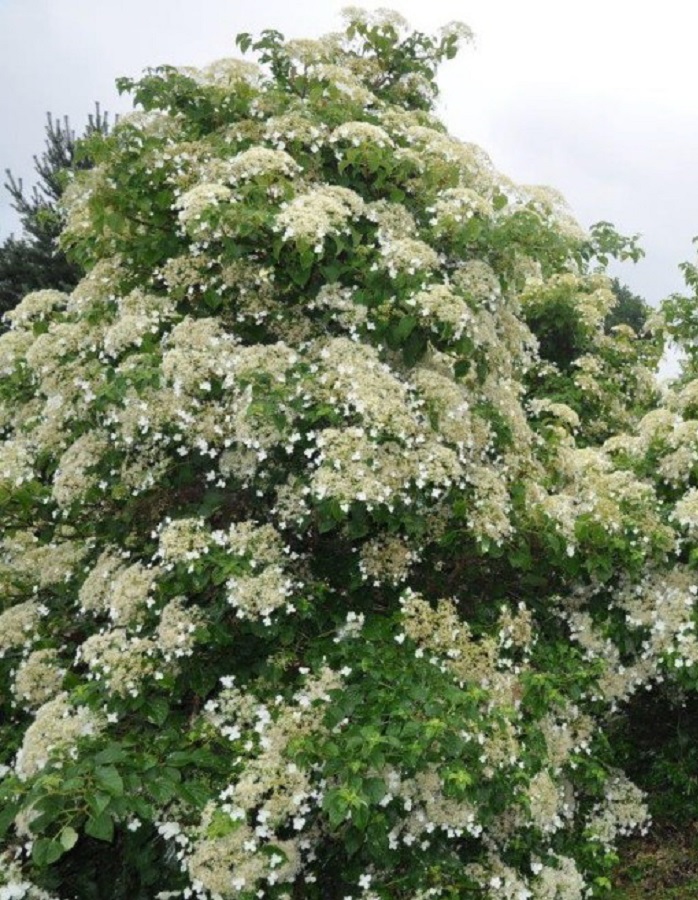 ПрименениеГортензия черешковая "Petiolaris" - многолетняя листопадная лиана. Вьется, может как стелиться по земле, так и оплетать любую опору, выпускает множество боковых побегов с воздушными корнями. Чтобы зеленое полотно разрасталось быстрей гортензию плетистую необходимо обрезать.Дерево (куст)Гортензия черешковая "Petiolaris" по праву относят к самому высокому сорту, она способна достигать высоты до 25 метров.ЛистьяЛистья темно-зеленые, широкие, с зубцами по краям, черешки длинные.Цветы (соцветия)Гортензия начинает цвести на 2–3-й год после посадки, иногда позже. Обильно цветет с июля до августа. Цветки бело-кремовые, приятно пахнущие, собраны в щитковидные соцветия диаметром до 20 см.