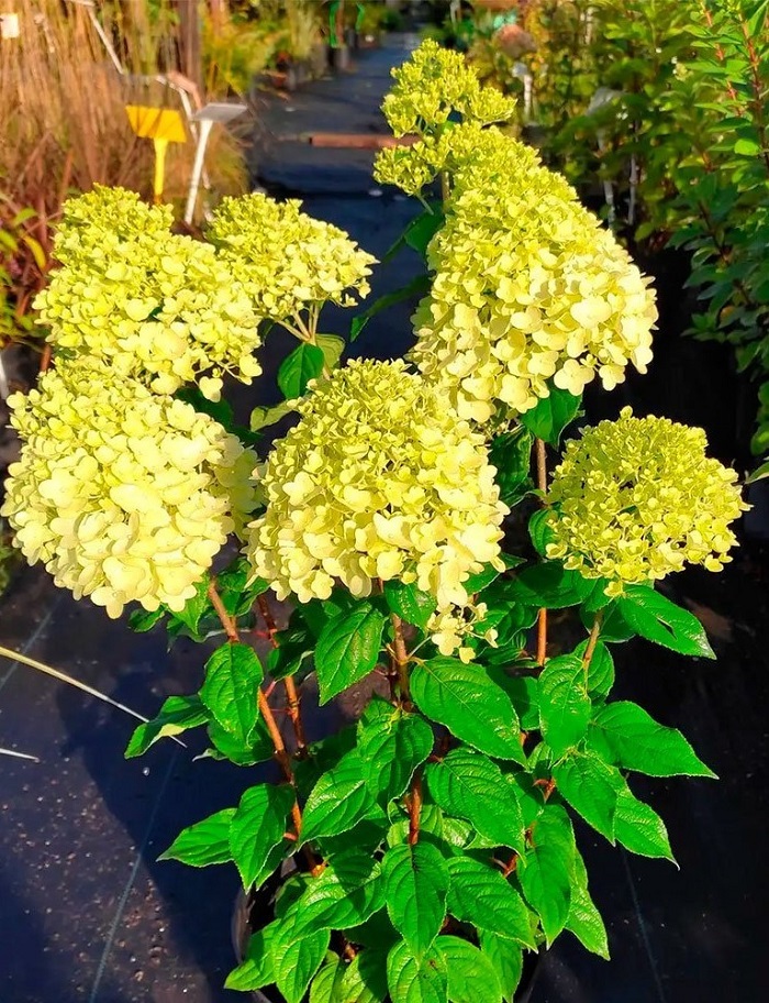 ПрименениеИспользуется в одиночных и групповых посадках, в миксбордерах, а также идеально подходит для альпийской горки.Строение растенияКуст компактный, хорошо разветвлённый, высотой 100-150 см. Ветви прочные. Не требует обрезки для регулирования роста. Листва темно-зеленая, мелкая.Цветы (соцветия)Ширококонические плотные соцветия (15-20см) состоят из стерильных цветков цвета лайма, сменяющих свою окраску на пурпурно-зеленую в конце цветения.ЗимостойкостьЗимостойкость высокая, до -29 °C.Возраст саженца1 годУсловия выращиванияСветолюбива, выносит полутень. Хорошо растет на удобренных увлажненных и слабокислых почвах.