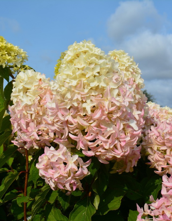 ПрименениеВид – метельчатая гортензия. Этот представитель флоры идеально подойдет для групповых или одиночных посадок. Из пышных кустов получится отличная живая изгородь. Растение идеально подойдет для декорирования террас, патио или балконов. Также сорт активно выращивают в контейнерах.Строение растенияКустарники компактные, многоствольные. Разрастается гортензия очень быстро, достигая до 120 сантиметров в высоту и 70 сантиметров в диаметре. Побеги расположены вертикально.ЛистьяОкрас листовых пластин сочно-зеленый. Форма листьев продолговатая, эллиптическая.Цветы(соцветия)Особенностью этого сорта являются крупные лепестки цветка, похожими на гиацинт. Лепестки вытянутые, с загнутыми кончиками. В каждом цветке собрано по 4 лепестка. Конические соцветия формируются на верхушках побегов. Из-за крупных размеров соцветий ветки не всегда способны выдержать их вес и наклоняются к земле. Длина соцветия – 30 сантиметров, диаметр – 20 см. Цвет лепестков зеленовато-белый, который после меняется на белоснежный. С наступлением осени они приобретают розоватый оттенок. В качестве основного цвета выделяют белый. Цветки меняют свой окрас на протяжении всего периода вегетации. Соцветия собраны из стерильных цветков. Плотность – густо набитая.ЗимостойкостьГортензия выдерживает морозы до -29 градусов по Цельсию. Зона морозостойкости – 4. Сорт неприхотливый и обладает крепкой иммунной системой.Возраст саженца1 годУсловия выращиванияСветолюбива, выносит полутень. Хорошо растет на удобренных увлажненных и слабокислых почвах.