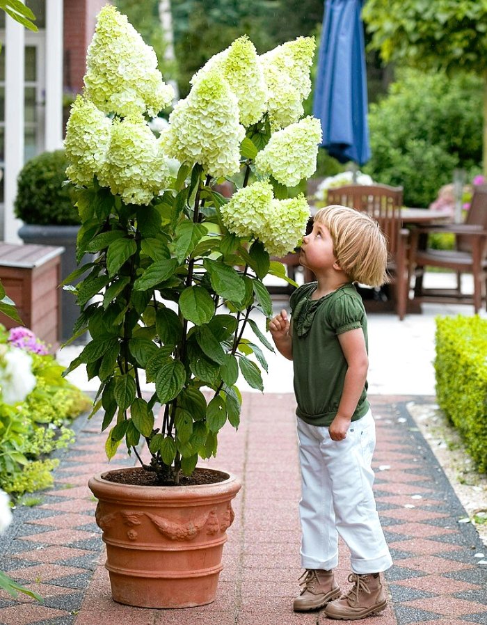 ПрименениеИспользуется в одиночных и групповых посадках, в миксбордерах.Дерево (куст)Куст в высоту достигает до 180см, в ширину – примерно по 2 метра.ЛистьяЛистья овальные, насыщенного зеленого цвета с легкой шероховатостью.Цветы (соцветия)Главной особенностью данного сорта являются очень большие плотные соцветия длиной до 40 см, конической формы на жестких, сильных стеблях. Цветы сразу слегка фисташковые, затем кремово - белые и к концу лета появляется нежно-розовый цвет. Соцветия распределены равномерно по всему кусту, создавая впечатление огромного цветущего букета в саду. Цветение с июля до поздней осени.ЗимостойкостьЗимостойкость до -34 °C.Возраст саженца1 годУсловия выращиванияСветолюбива, выносит полутень. Хорошо растет на удобренных увлажненных и слабокислых почвах.
