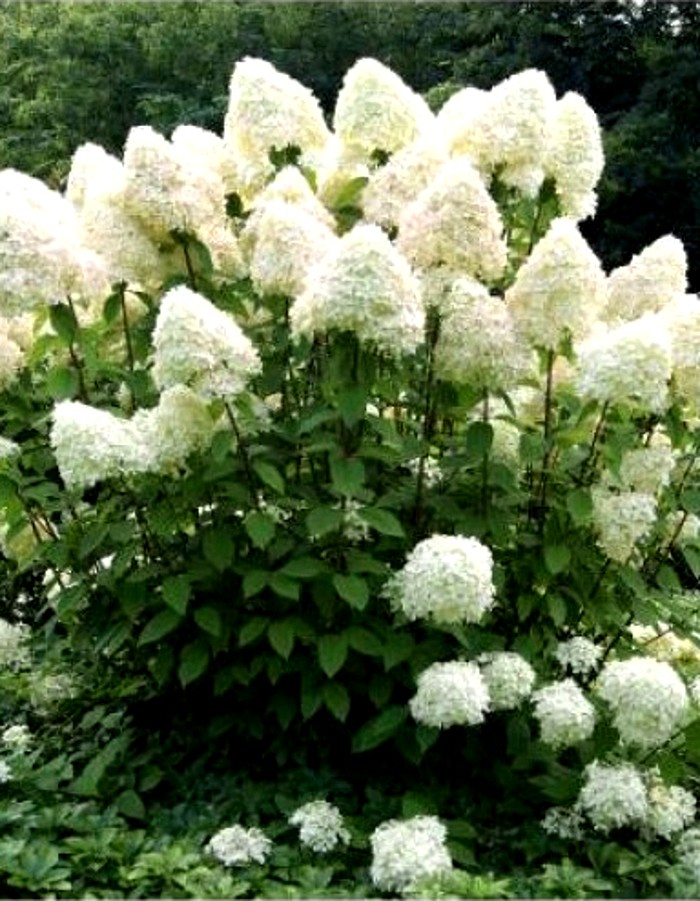ПрименениеИспользуется в одиночных и групповых посадках, в миксбордерах.Дерево (куст)Крона имеет шарообразную форму, в диаметре составляет до 2-2.5 м, в высоту кустарник вырастает до 2.5-3 м, часто эти показатели одинаковы. Корни у растения развитые, раскидистые, растущие в стороны, расположены в поверхностном почвенном слое.ЛистьяЛистья крупные, имеют овальную форму, их длина составляет 10-12 см, поверхность шероховатая, покрытая небольшим пушком.Цветы (соцветия)Цветение длится с июня по сентябрь. В это время кустарник полностью покрывается тяжелыми пирамидальными соцветиями величиной до 30 см. Цветки мелкие, на соцветиях расположены плотно. В начале цветения бутоны окрашены в кремовый, затем становятся белыми и постепенно приобретают розоватый окрас. С приближением осени цветки становятся зеленовато-красными. Полноценного цветения молодой Гортензии можно дождаться не раньше чем через 4-5 лет, но на 2-3 год она уже порадует первыми зачатками бутонов.ЗимостойкостьЗимостойкость высокая, до -34 °C.Возраст саженца1 годУсловия выращиванияСветолюбива, выносит полутень. Хорошо растет на удобренных увлажненных и слабокислых почвах.Морозоустойчивый сорт, но в первые два года требуется укрытие.