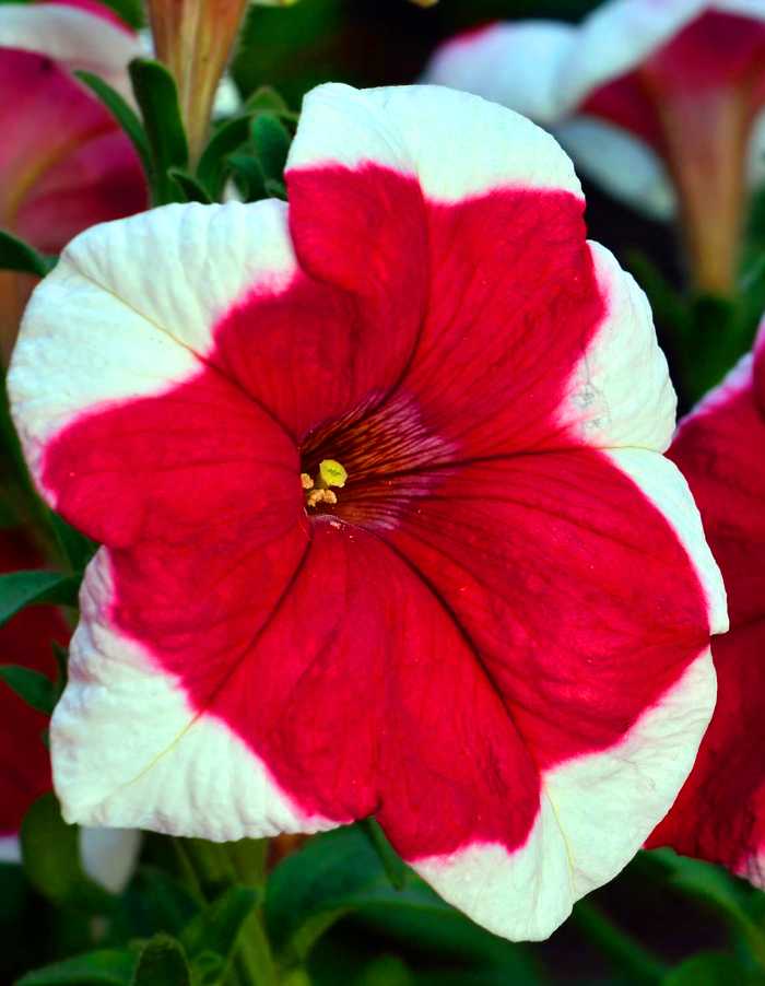 Сильноветвящееся растение с обилием крупных цветков, высотой 20-25 см, станут отличным украшением вашего сада или балкона. Цветки красно-малиновые с белыми пятнами по краю лепестков, диаметром 8-12 см, буквально осыпают куст, делая растение заметным издалека. Цветет обильно с июня до заморозков. Растение свето- и теплолюбивое, засухоустойчивое. Отличается устойчивостью к неблагоприятным погодным условиям. Быстро восстанавливает цветение после сильного дождя. Используют для клумб, рабаток, балконных ящиков и контейнеров.