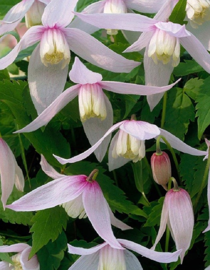 ПрименениеМорозостойкая, неприхотливая лиана высотой 2-3 м, относящаяся к 1-й группе обрезки (не требует обрезки на зиму). Характерные особенности: раннее и обильное цветение в мае-июне нежно-розовыми, колокольчиками до 10 см, часто полумахровыми, с более темным основанием, а затем декоративные пушистые соплодия. Хорошо растет в полутени на дренированных почвах, идеален для арок, пергол, беседок, а также как почвопокровное.КустВысота 2-3 метра, гибкие побегиЦветы/соцветияКолокольчатые, нежно-розовые с темным основанием, диаметром 7-10 см, иногда полумахровые.Возраст саженца1 годУсловия выращиванияЗимостойкость высокая, до -35°C и ниже, хорошо переносит зимы.Группа обрезки1