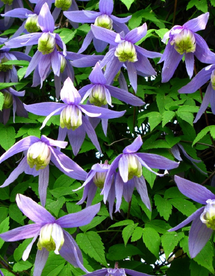 ПрименениеЗимостойкая, неприхотливая лиана с гибкими побегами до 3 м, цветущая ранней весной колокольчатыми цветками синих, фиолетовых, розовых, белых оттенков на прошлогодних побегах, с последующим декоративным цветением и пушистыми соплодиями. Он относится к группе обрезки 1, не требует сильной обрезки, переносит полутень, предпочитает умеренно плодородные почвы и идеально подходит для вертикального озеленения стен, арок, балконовКустВысота до 3-4 метров, с быстрым ростом.Цветы/соцветияКолокольчатые, поникающие, 2-8 см в диаметре, состоят из 4 чашелистиков. Окраска варьируется от светло-голубой и сине-фиолетовой до розовой и кремовой.Возраст саженца1 годУсловия выращиванияЗимостойкость высокая, до -35°C и ниже, хорошо переносит зимы.Группа обрезки1