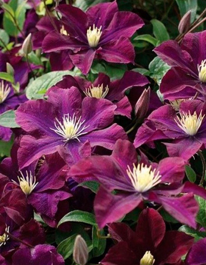 ПрименениеИспользуют в ландшафтном дизайне. С его помощью оформляют стены зданий, террас, беседок.КустРастение представляет собой вьющуюся листопадную лиану, для которой характерен очень быстрый рост. При благоприятных условиях за ночь побеги могут подрасти на 5-10 см. В течение лета гибрид способен нарастить максимум пять молодых побегов.ЛистьяЦвет вьющихся стеблей – зеленый. Стебли покрыты темно-зелеными овальными кожистыми листьями. Их размер варьируется от 10 до 15 см в длину. Растение обладает мощной корневой системой, способной разрастаться и в глубину (около метра), и в ширину.Цветы (соцветия)В начале лета клематис покрывается большими (диаметр от 12 до 17 см) и невероятно красивыми цветами. Их пурпурно-фиолетовые лепестки бархатистые и приятные на ощупь. Сердцевину украшает пучок ярко-желтых тычинок. Период цветения достаточно долгий и длится до сентября.Возраст саженца1 годУсловия выращиванияОчень важно хорошо укрыть побеги на зиму.Группа обрезки2