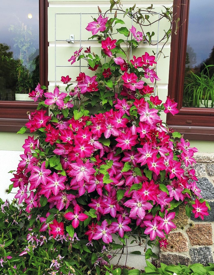 Интересно, что за лето цветок слегка выгорает, и полоса становится не такой чёткой, а более размытой, мягкой. Относится к двухцветным.ПреимуществаПомимо своей удивительной красоты, клематис Вива Полония обладает и другими преимуществами. Например, лиана малотребовательна, неприхотлива. Растение отличается внушительной морозостойкостью, относится к 4 зоне по классификации USDA (от -34° С до -29° С).Возраст саженца1 годУсловия выращиваниятеплое, хорошо освещенное и защищенное от ветра место и рыхлой плодородной почву. Морозоустойчивый сорт.Группа обрезки2